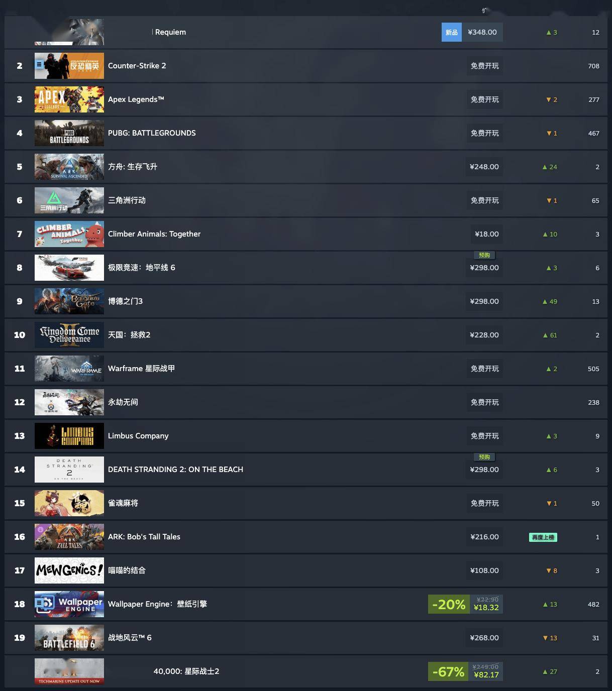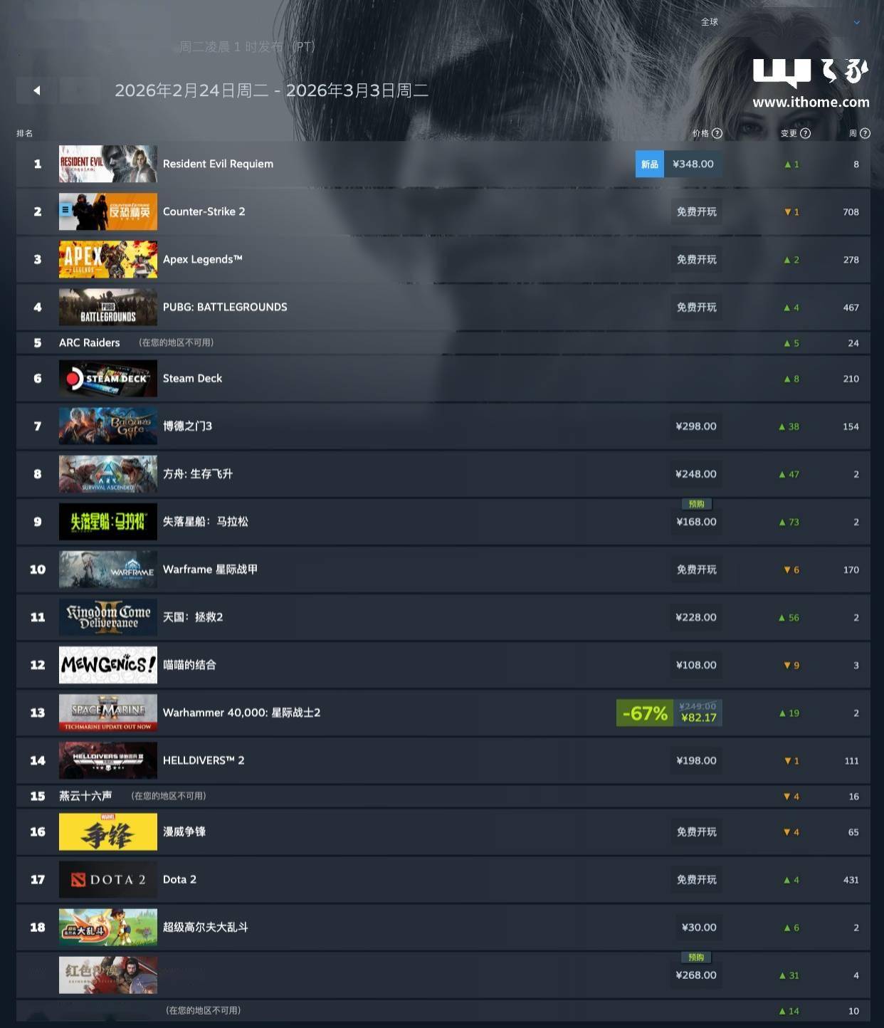 月 4 日新闻IT之家 3 ,6 年 2 月 24 日-2026 年 3 月 3 日Steam 这日发表了最新一周游戏销量排行榜(202,游戏)无免飞博app费,安魂曲》正式发售本周《生化危殆:,后陆续登顶凯旋继预购,榜单两连冠实行环球。飞博最新网址